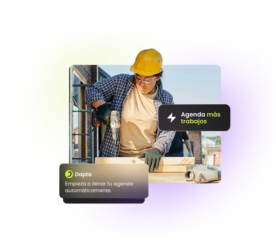 La IA de Dapta trabaja junto a profesionales de servicios que ya están ocupados con herramientas, clientes y plazos. Sabemos que cuando estás en el sitio no siempre puedes contestar llamadas o responder cotizaciones al instante.