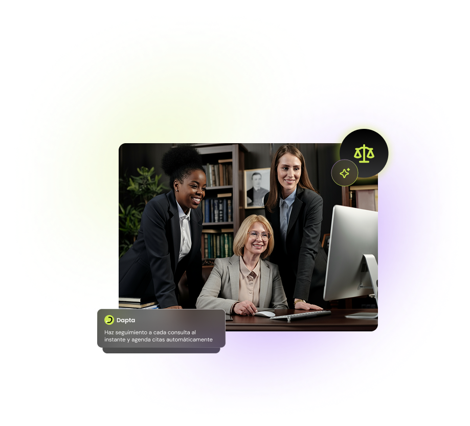 El software de IA de Dapta ayuda a las firmas legales a dar seguimiento inmediato a cada consulta, agendar reuniones automáticamente y liberar a los abogados de tareas administrativas — para que puedan enfocarse en horas facturables.