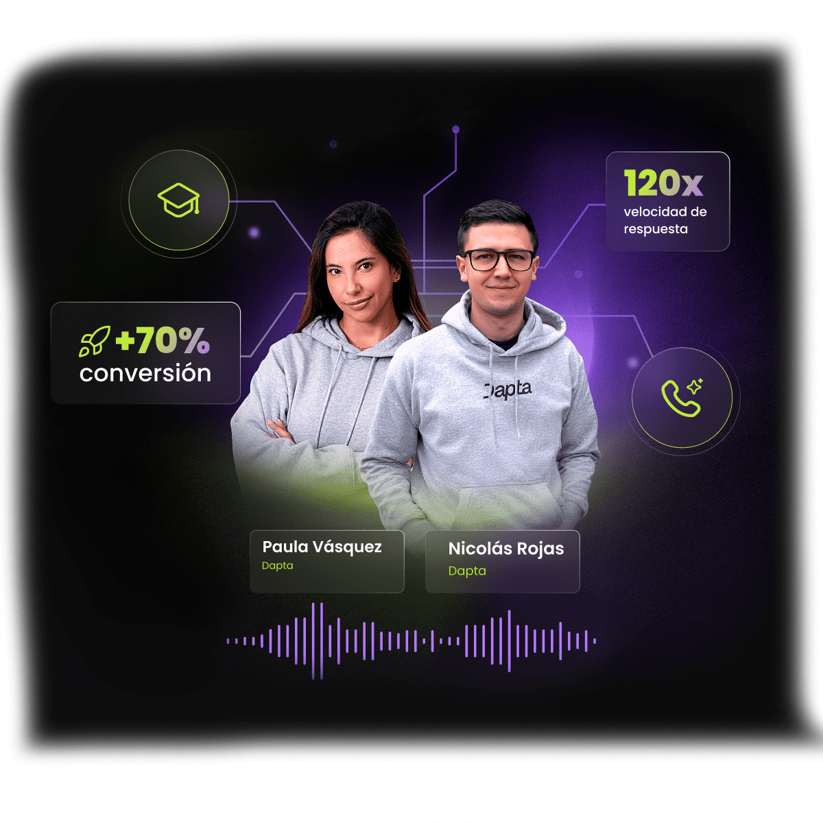 "Dapta nos permite atender problemas de clientes 24/7, garantizando un soporte sin interrupciones y una resolución más rápida para cada cliente."